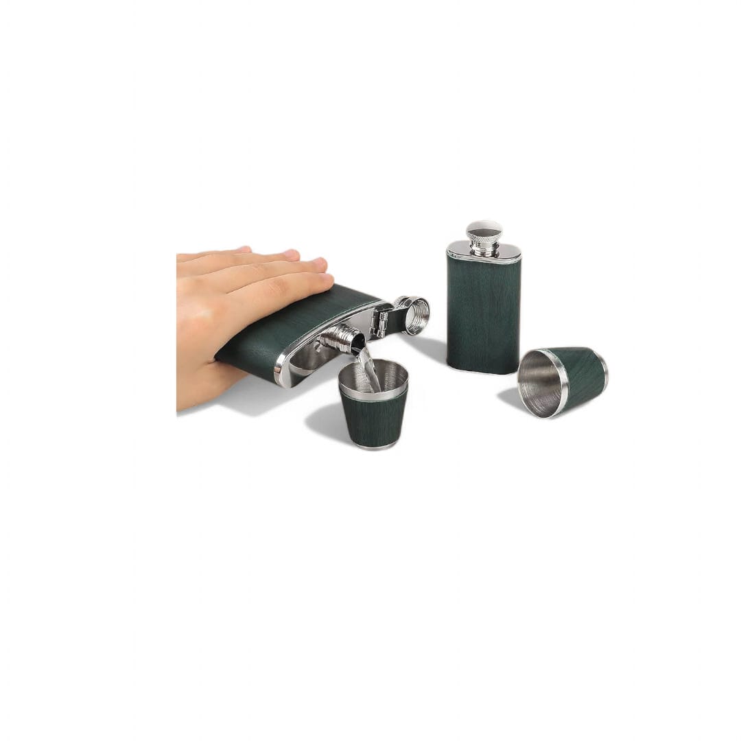 5 PIECE PORTABLE WHISKEY SET GREEN