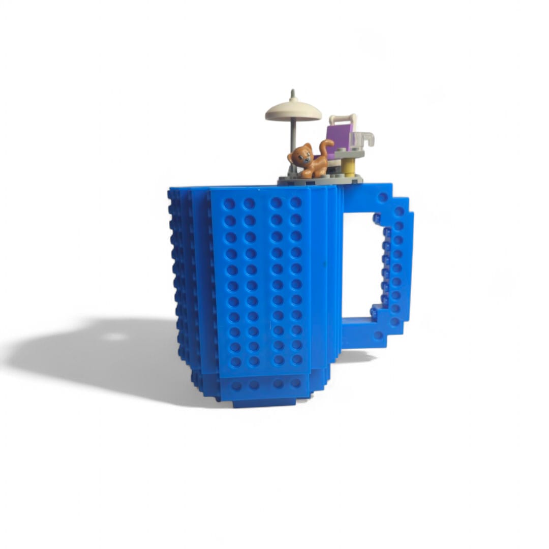 BLUE LEGO MUG, INCLUDES ASSAMBLE PARTS.