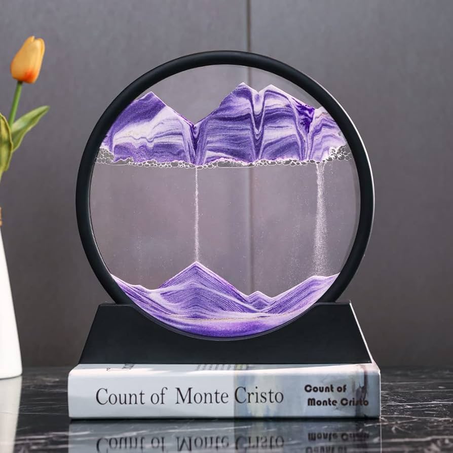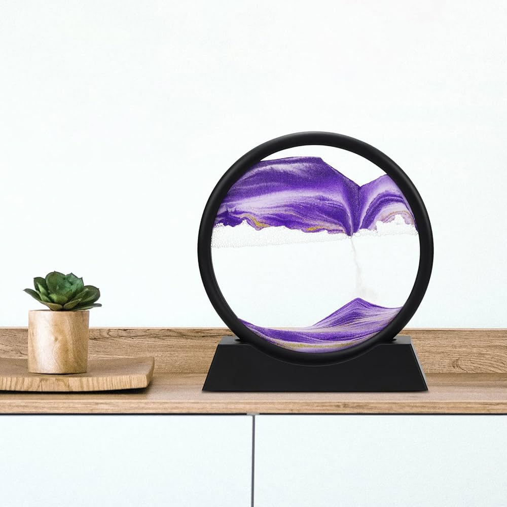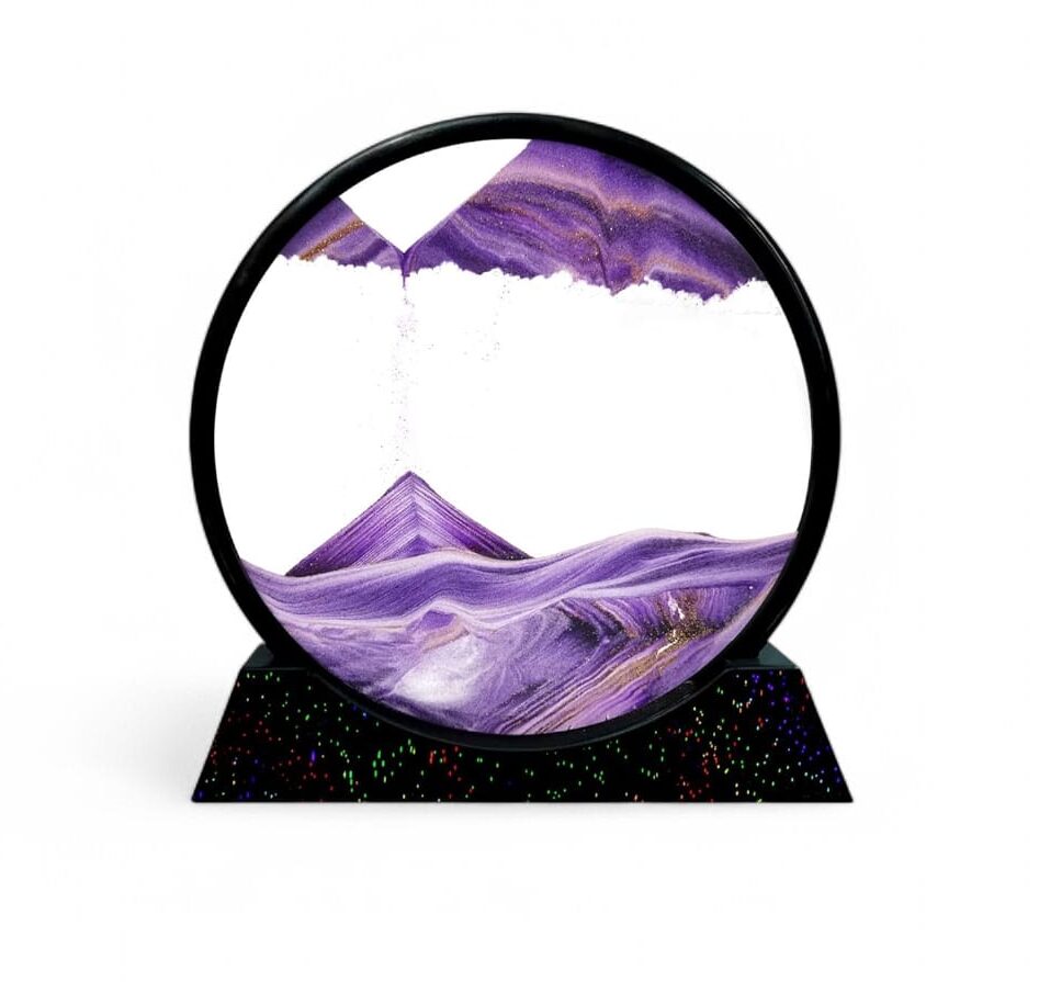 MOBILE SAND PAINTING, 18CM RADIUS, 19CM HIGH WITH BASE.